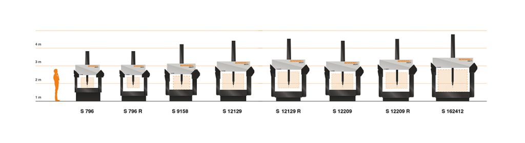 Working volumes: 700 × 900 × 600 mm to 1600 × 2400 × 1200 mm